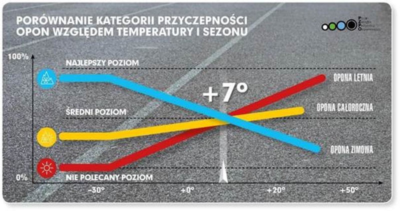 Różnica nie wynika z magii, tylko z fizyki. Bieżniki opon letnich są zaprojektowane z twardszej mieszanki gumowej, która przy wysokich temperaturach zachowuje odpowiednią elastyczność i przyczepność. Gdy temperatura spada poniżej 7, a w oponach sportowych 10 stopni, ta sama guma staje się coraz sztywniejsza i zmniejsza się jej do przyczepność. W mroźne poranki twardość bieżnika opon letnich przypomina twardość plastiku. Jazda na nich to ruletka, ale niestety z większą szansą na zniszczenie auta niż na inną wygraną.