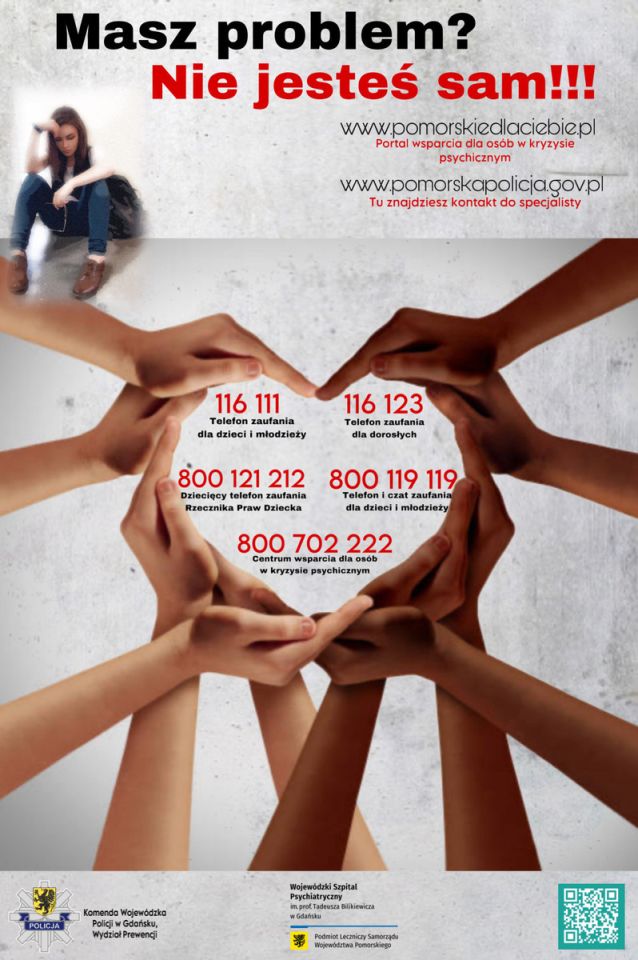 Policjanci przypominają, że osoby w kryzysie emocjonalnym mogą szukać wsparcia za pośrednictwem infolinii oraz instytucji pomocowych. W sytuacjach bezpośredniego zagrożenia zdrowia lub życia natychmiast zadzwoń 112. Dla wsparcia emocjonalnego dostępne są Telefony Zaufania 116 123 i 116 111 oraz całodobowe formy pomocy opisane poniżej.